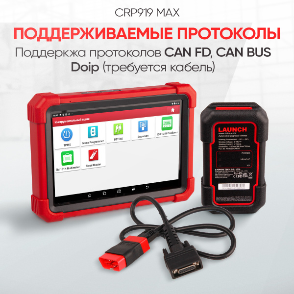 Launch CRP919 MAX - это новый диагностический сканер, выпущенный компанией Launch в 2024 году. Он входит в линейку PRO и предназначен для специалистов начального и среднего уровня, которым требуется диагностика без лишних функций. Сканер поддерживает все современные протоколы, включая CAN FD и DoIP. В комплект входит 100 марок, 31 сервисная функция и 3 года обновлений. Связь с VCI адаптером осуществляется по Bluetooth.