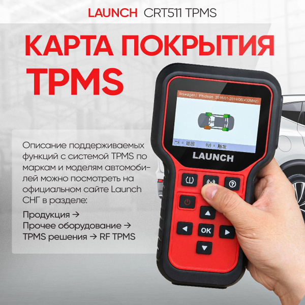 Карта покрытия Launch по системам TPMS